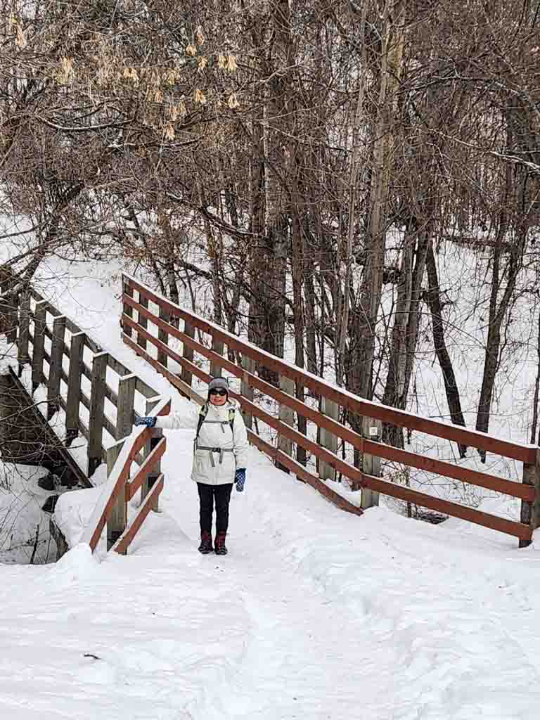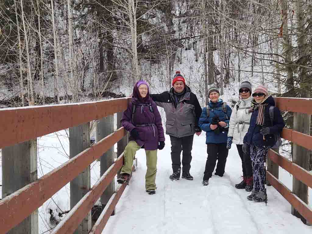 Eight hikers enjoyed a 12 km round trip hike on Sunday, from Snow Valley up to the loop around Fort Edmonton Park and the John Janzen Nature Centre, and back to Snow Valley. All eight hikers wore ice grippers and that was a smart move as the trail was covered in ice. We had sunny periods throughout the hike which we enjoyed very much.