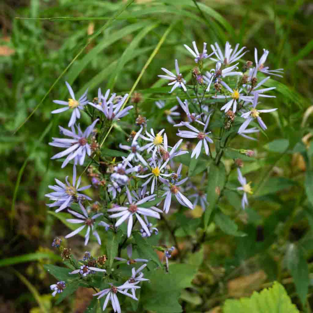 Late summer is the season for purple asters, and we saw many. These are actually two distinct species, Showy Wood-Aster (Eurybia conspicua) and the Fringed American-Aster (Symphyotrichum ciliolatum)