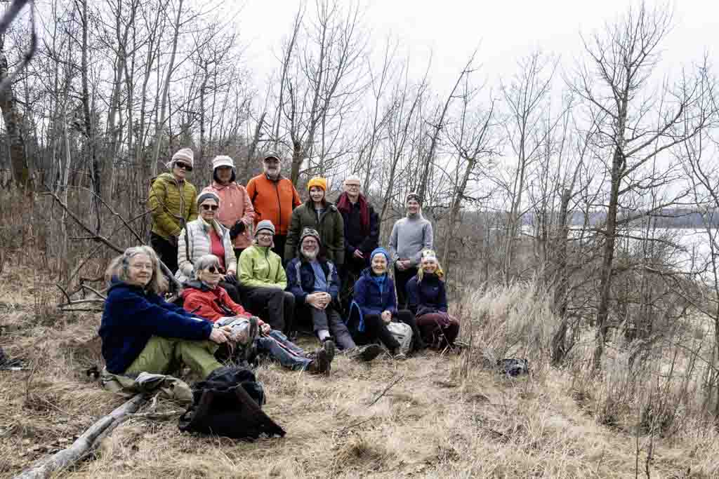 Thirteen people came out to hike the south end of Saunders Lake. It was windy at the start, but the strong wind dwindled to nothing as we left Rollyview Road and headed north along the edge.