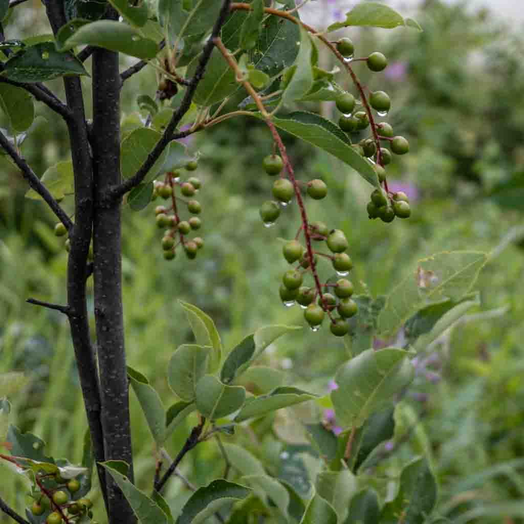 We continue to be astonished by the abundance of fruits this year. The squirrels will be gorging on beaked hazelnuts longer than usual. There are also plenty of saskatoons, and the chokecherries will be ripening next.